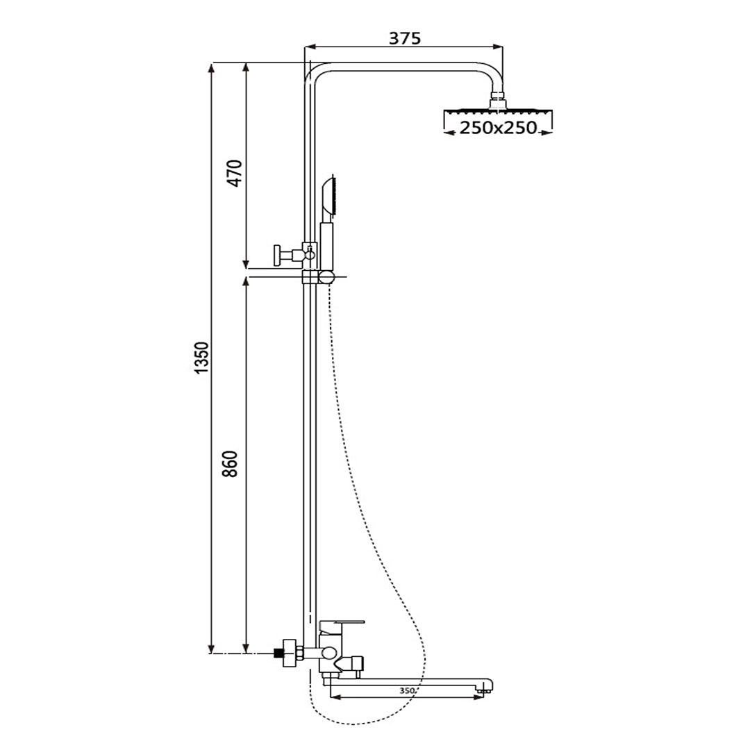 длина излива: 350мм.