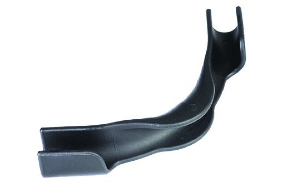 Фиксатор с кольцами состоит из изогнутого ложа для трубы и двух пружинных колец для фиксации.