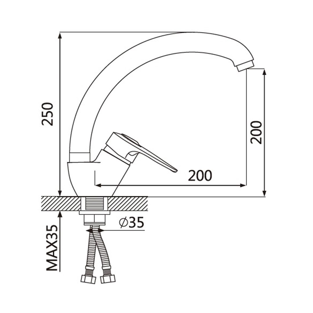длина излива: 200мм.
