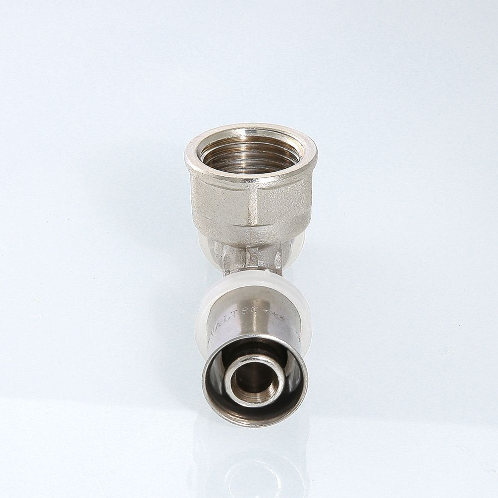 (VTm.232.N) Пресс-фитинг – тройник с переходом на внутреннюю резьбу служит для присоединения к металлопластиковым (металлополимерным) трубам и трубам из сшитого полиэтилена элемента системы, имеющего наружную резьбу. Резьба фитинга – трубная по ГОСТу 6357.