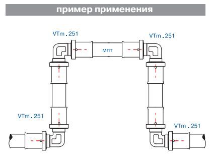 (VTm.251.N) Пресс-фитинг – угольник, обеспечивающий соединение труб (металлопластиковых или из сшитого полиэтилена) под углом 90 градусов. Особенности конструкции изделия, используемые материалы обусловили надежность соединений, повышенную пропускную способность, температурную стойкость, механическую прочность. При изготовлении пресс-угольника используются высококачественные материалы: сантехническая латуни CW617N с никелевым покрытием (корпус), нержавеющая сталь (гильза), EPDM (уплотнительные кольца, 2 шт. для каждого штуцера). Фиксатор, одновременно играющий роль диэлектрической прокладки, делается из нейлона. Монтаж соединителя выполняется пресс-инструментом с насадкой «ТН».