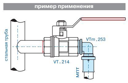 (VTm.253.N) Угловой пресс-фитинг для подсоединения к металлопластиковой трубе (металлополимерная труба) или трубе из сшитого полиэтилена компонента системы с резьбовым подключением. Резьба фитинга – наружная трубная по ГОСТу 6357.